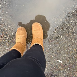 Very sticky, wet, fur boots. Well worn, daily wear. No socks.